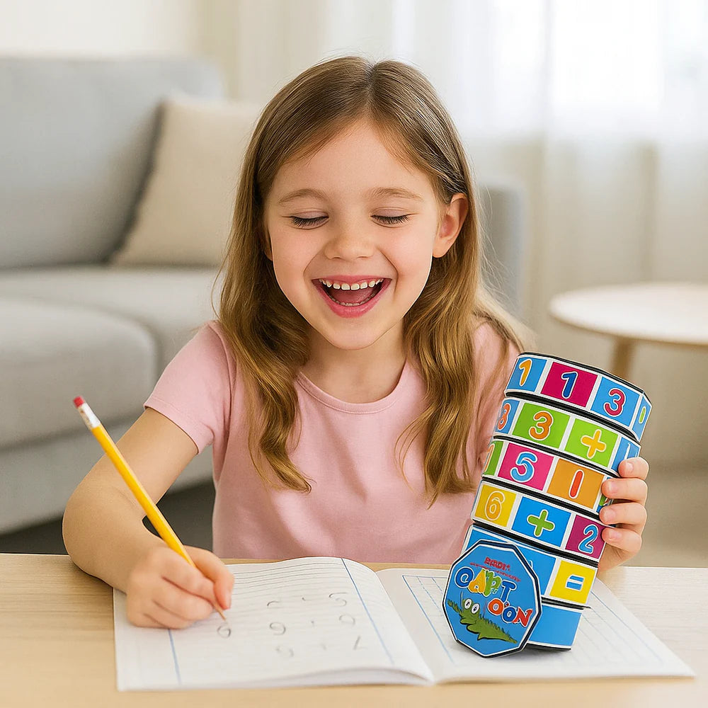 Le Cube Magique avec Chiffres transforme les mathématiques en un jeu captivant. Grâce à ses faces rotatives et ses symboles colorés, les enfants apprennent les chiffres, les opérations et les comparaisons tout en s’amusant.