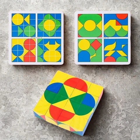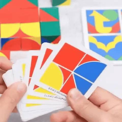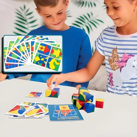 À travers ses cubes colorés et ses cartes de modèles, les enfants apprennent à reproduire des formes, à reconnaître les couleurs et à stimuler leur sens de l’observation tout en s’amusant.